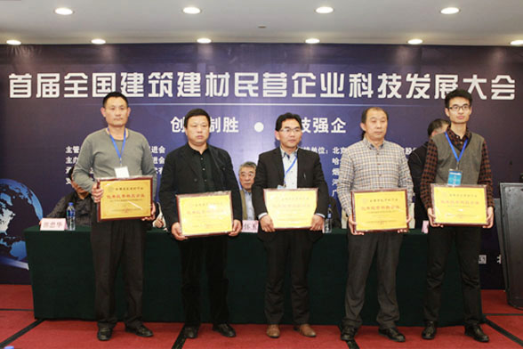 首屆“全國建筑建材民營企業(yè)科技發(fā)展大會”在北京舉辦,同化滿載而歸。煙臺同化榮獲“全國建筑建材優(yōu)秀民營科技企業(yè)”稱號、董事長曹菊娣被評選為“全國建筑建材優(yōu)秀民營科技企業(yè)家”、生產(chǎn)技術(shù)總監(jiān)曹士才被評選為“全國建筑建材先進民營科技工作者”。