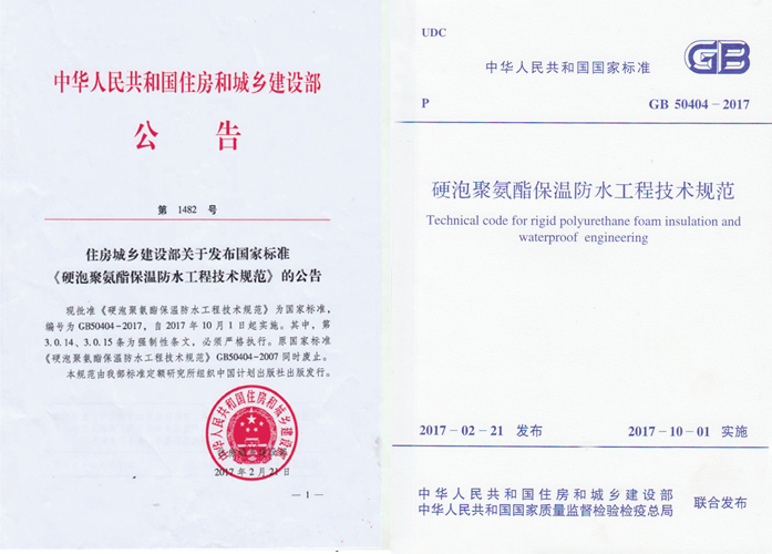 近日,由煙臺同化防水保溫工程有限公司主編的國家標準《硬泡聚氨酯保溫防水工程技術規范》(GB50404-2017),經過中華人民共和國住房和城鄉建設部、中華人民共和國國家質量監督j檢驗檢疫總局聯合發布,現已正式出版發行將于2017年10月01日開始實施,標準文本由中國計劃出版社出版發行。這是煙臺同化防水保溫工程有限公司十年來二度主編國家標準。